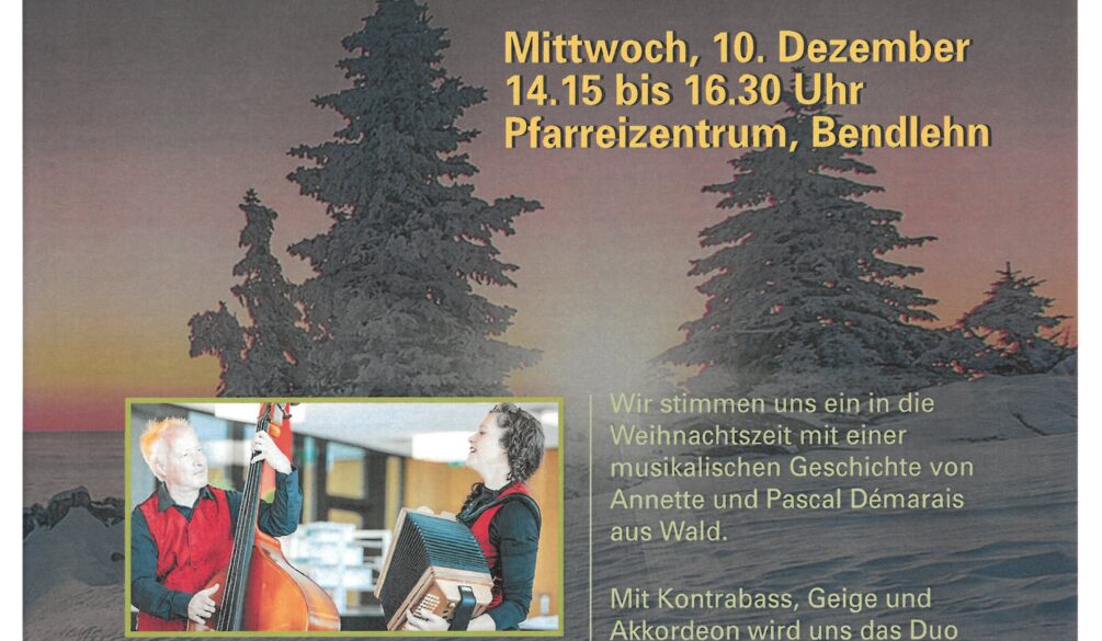Adventsfeier für Seniorinnen und Senioren im Pfarreizentrum Bendlehn. Anmeldung bis 8. Dezember an Imelda Sonderegger / T 071 877 20 15