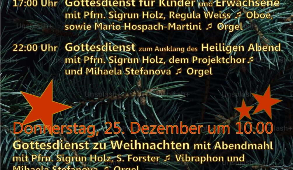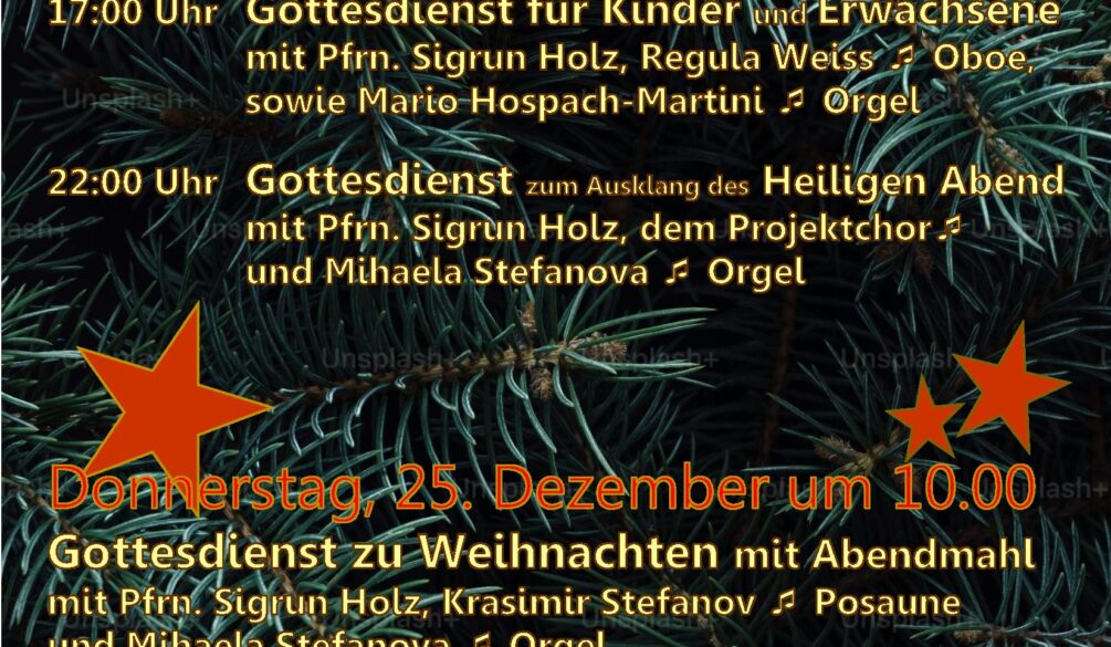 Der festliche Höhepunkt: Gottesdienst am Heiligabend, 24. Dezember, um 22 Uhr in der ref. Kirche.