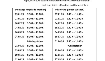 Mamis, Papis mit ihren Kindern oder Grosseltern mit den Enkelkindern treffen sich zum Spielen, Plaudern und Kaffeetrinken.