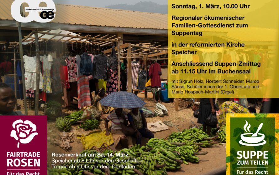 mit Pfrn. Sigrun Holz, Norbert Schneider, Marco Süess, Schüler:innen der 1. Oberstufe und Mario Hospach-Martini an der Orgel. Anschliessend Suppen-Zmittag im Buchensaal