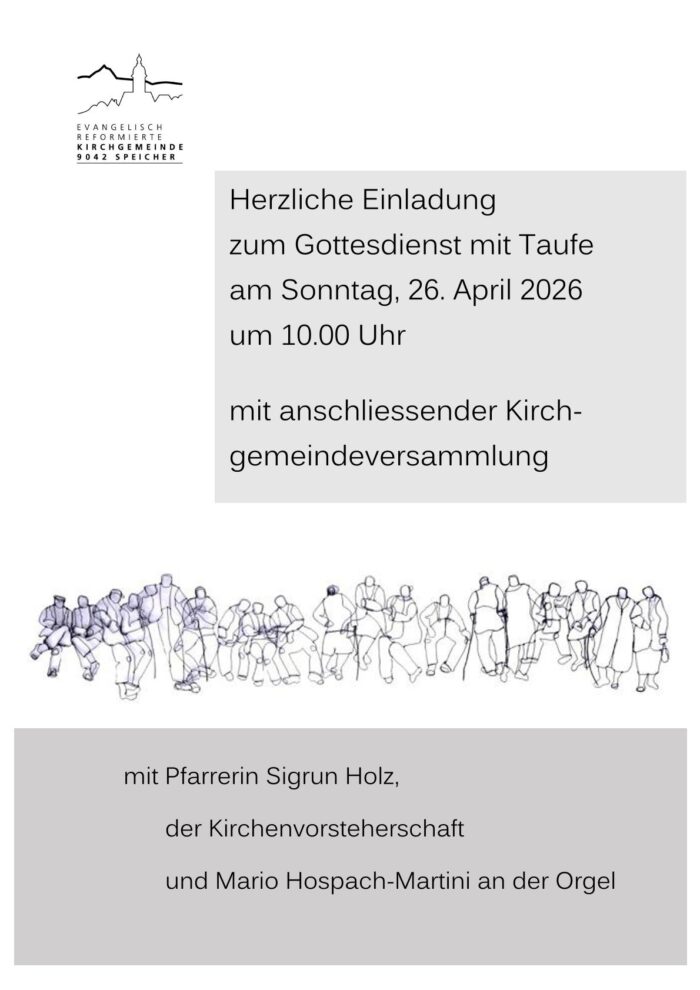 Evang. Kirchgemeindehaus Bogenweg 4,9042 SpeicherDie Broschüre zur Kirchgemeindeversammlung finden Sie unter folgendem Link: KGV 2026